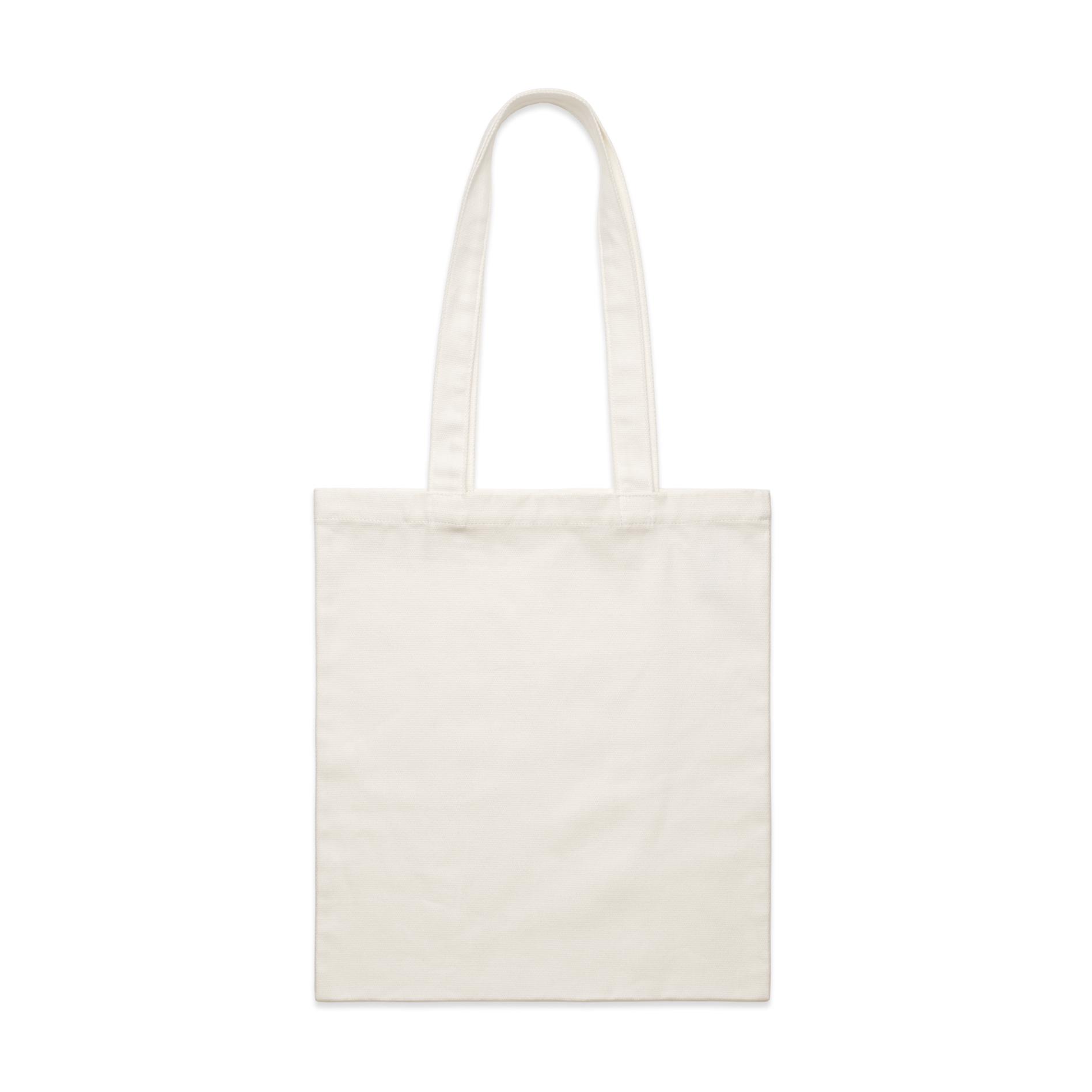 Please note we don't print white ink on these totes, so anything white will be the colour of fabric instead.